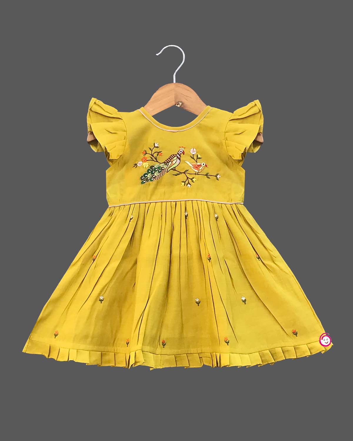 Girls peacock printed traditional frock - Mustard