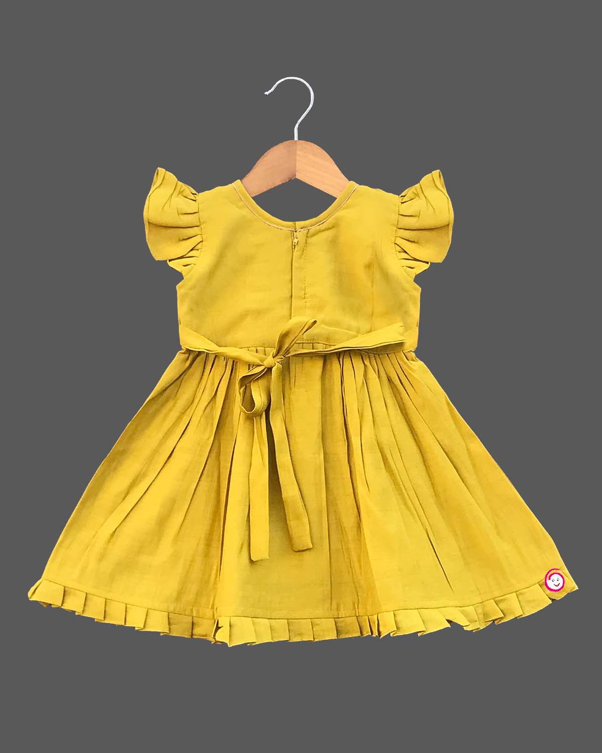 Girls floral embroidery traditional frock - Mustard