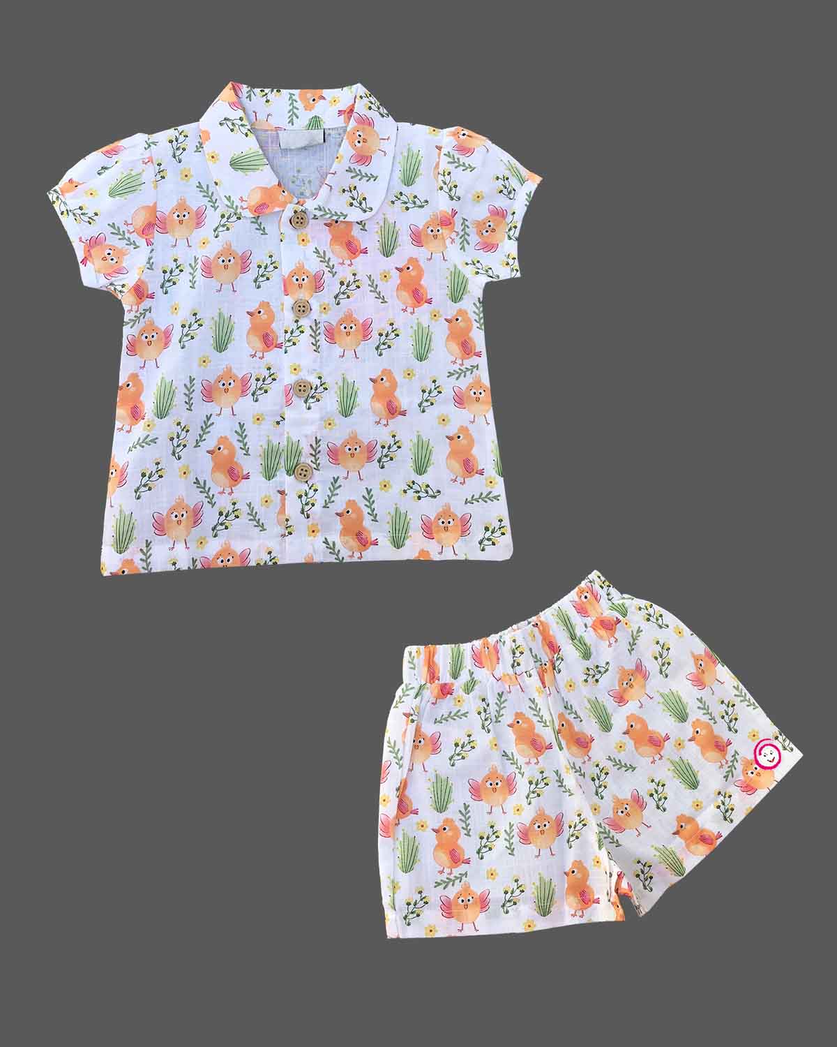 Girls bird printed top & shorts - White