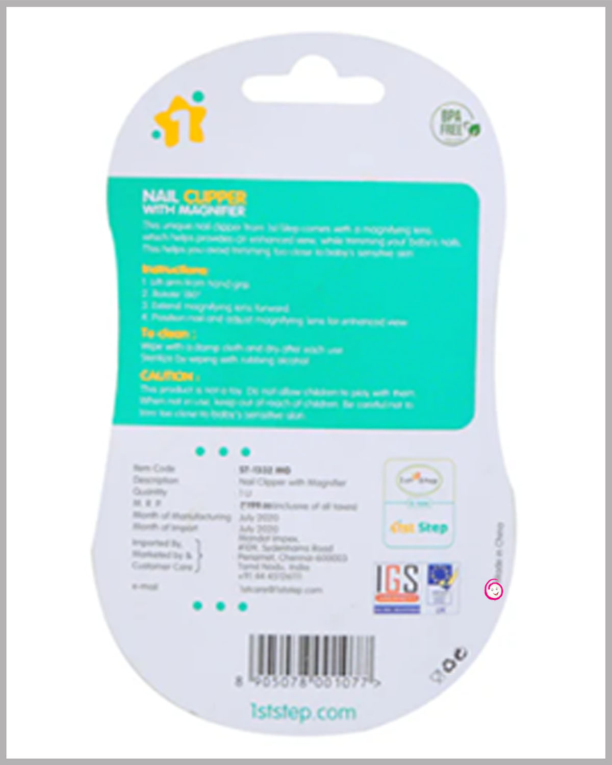 1st Step Easy Grip Baby Nail Clipper With Magnifying Glass - Green