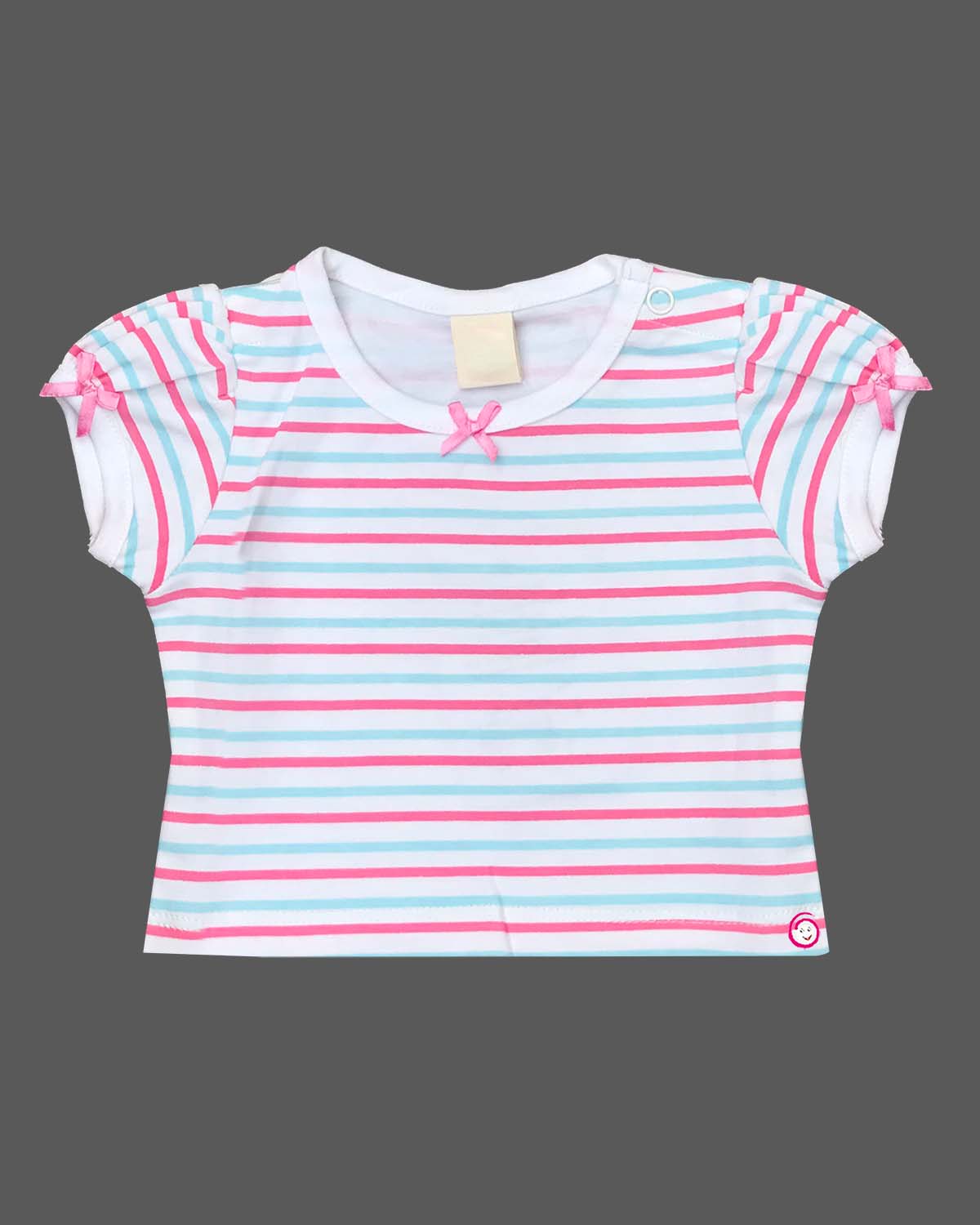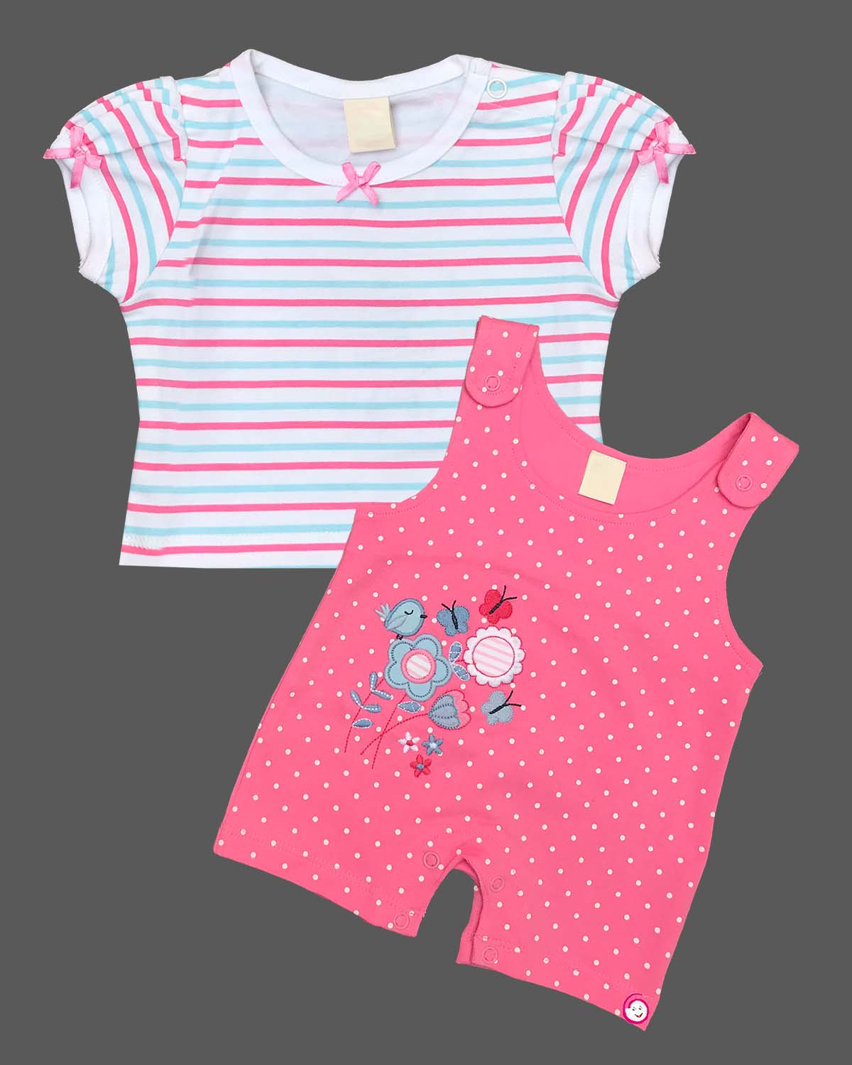 Girls line printed puff sleeve t-shirt with half romper - Pink