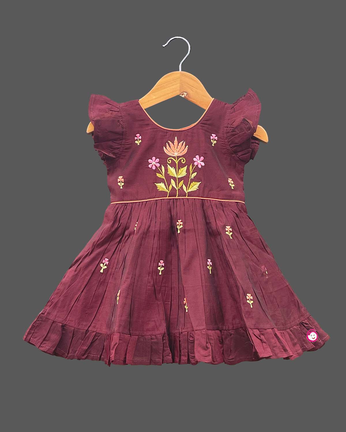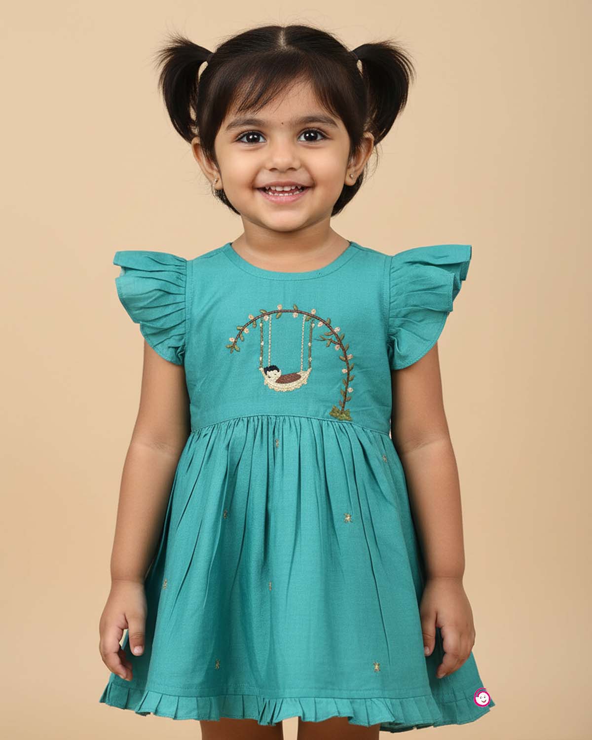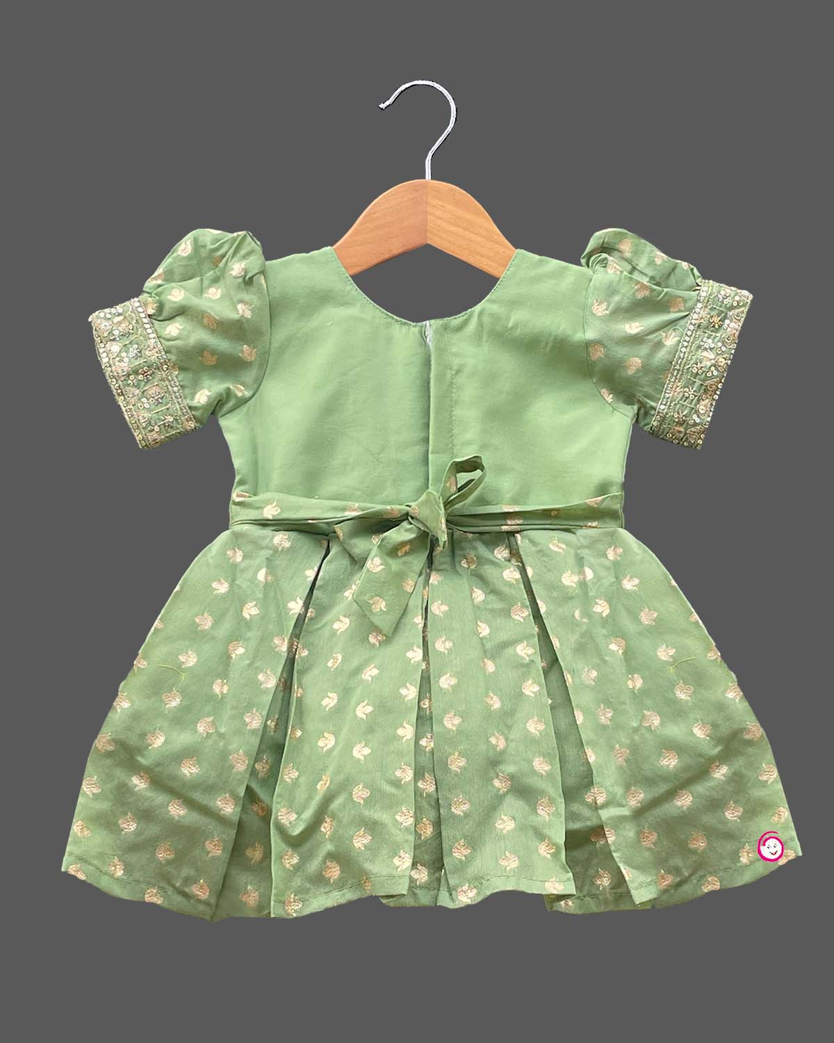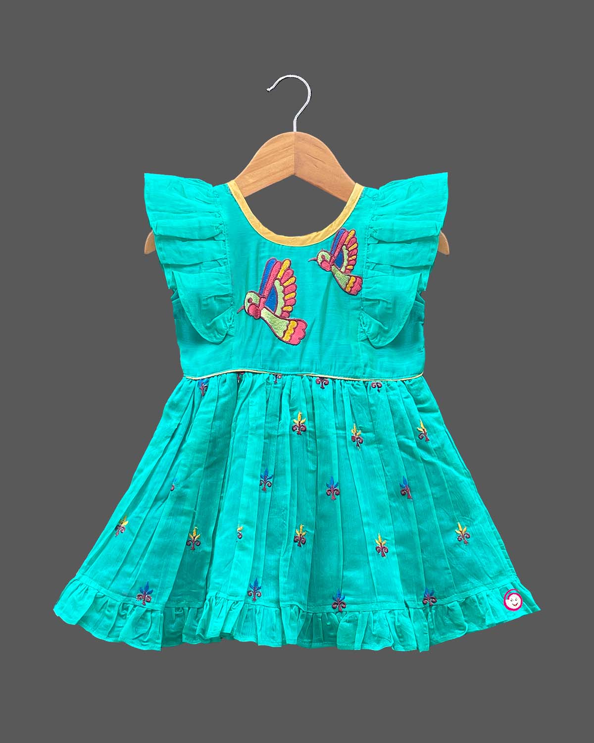One of the most popular choices in girls ethnic wear is the Traditional Pattu frock. This is a fusion of Indian Elegance and a western frock. Made from luxurious Silk cotton fabric, these frocks are known for their rich texture and vibrant colors. They come in various designs, including floral motifs, peacock patterns, and geometric prints, making them a favorite among parents and children alike. The charm of kids traditional pattu frocks lies in their traditional yet trendy appeal, making them a perfect choice for special occasions.