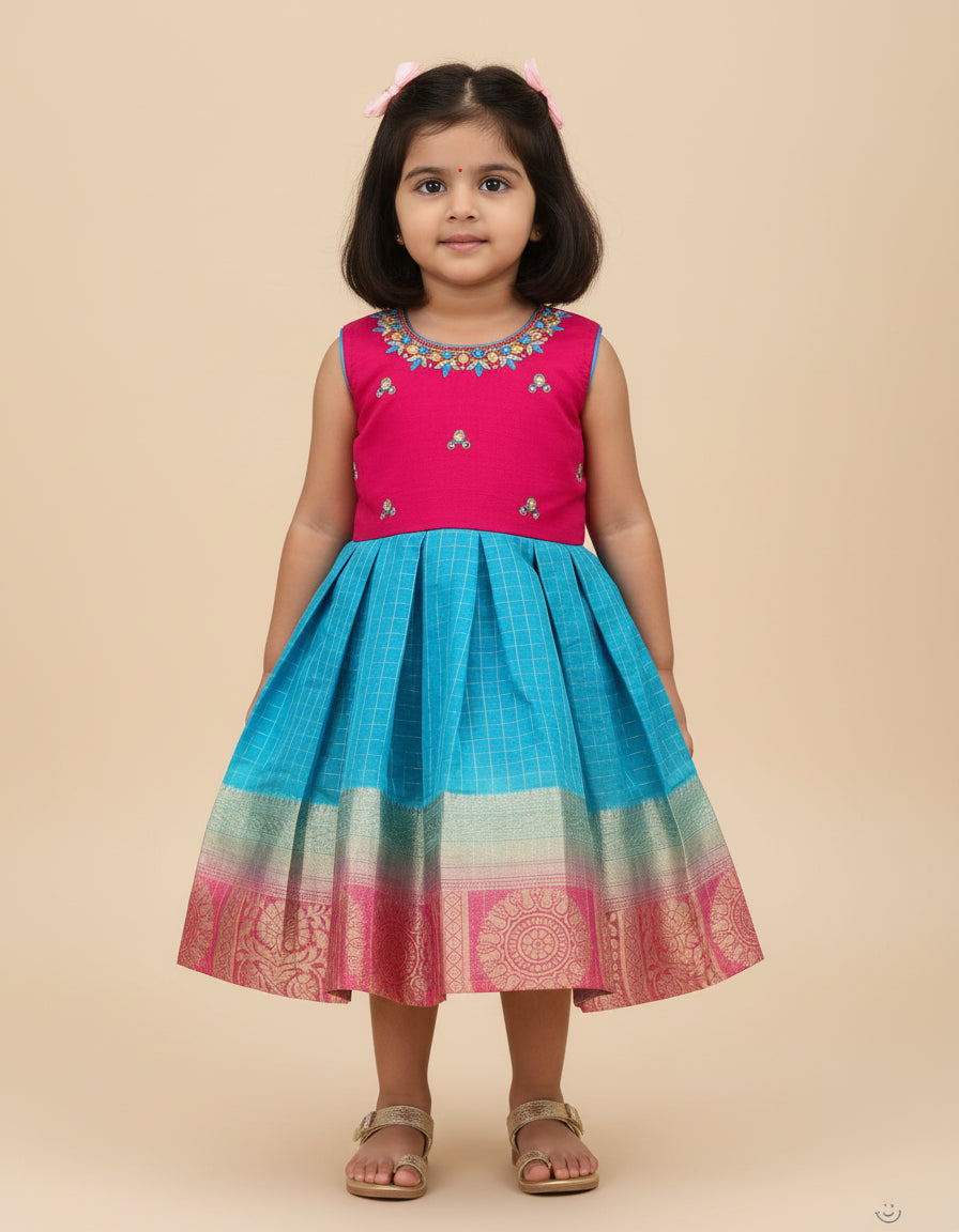 Girls Ethnic Embroidery Work Frock - Dark Pink