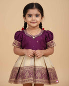 Girls puff sleeve zari design traditional frock - Indigo