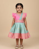 Girls zari neck embroidered saree pleated traditional frock