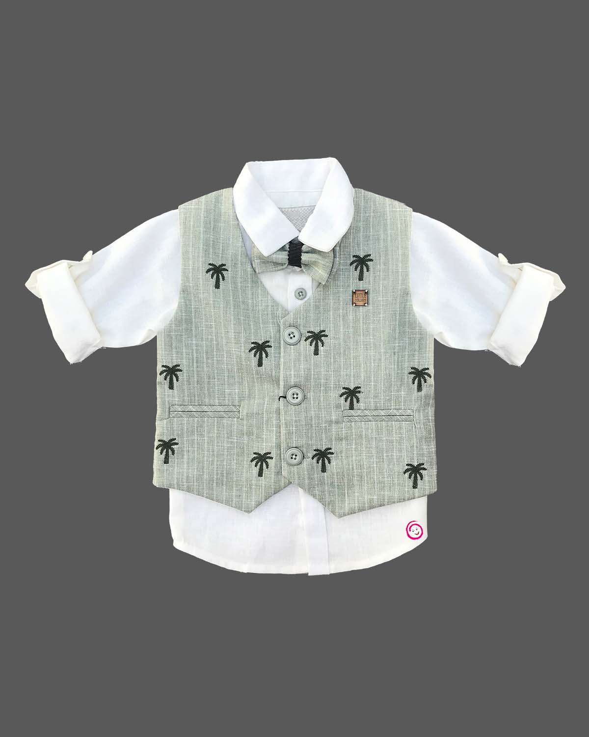 Boys elegant printed bow waistcoat set - Beige