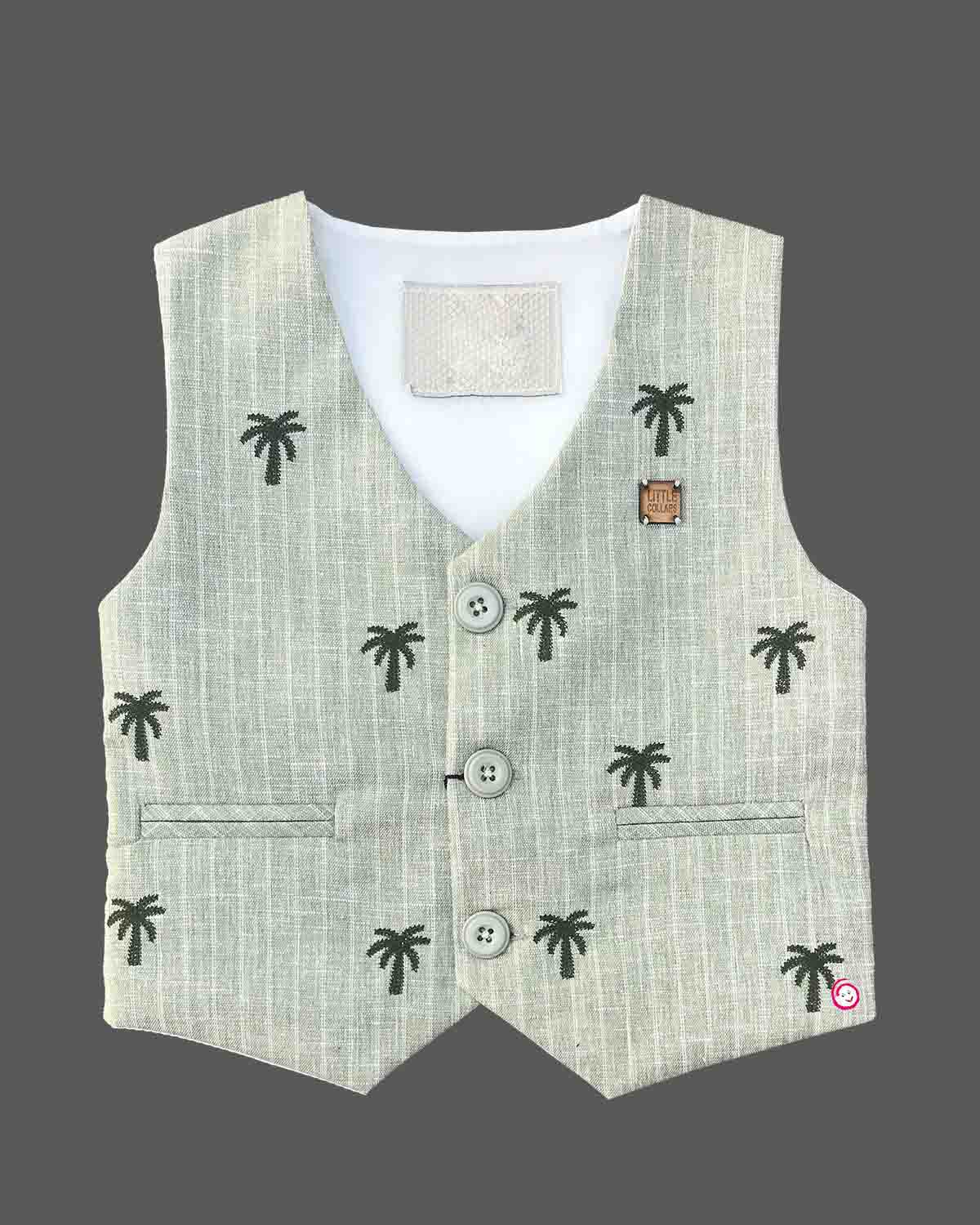 Boys elegant design printed waistcoat set - Mehandi Green