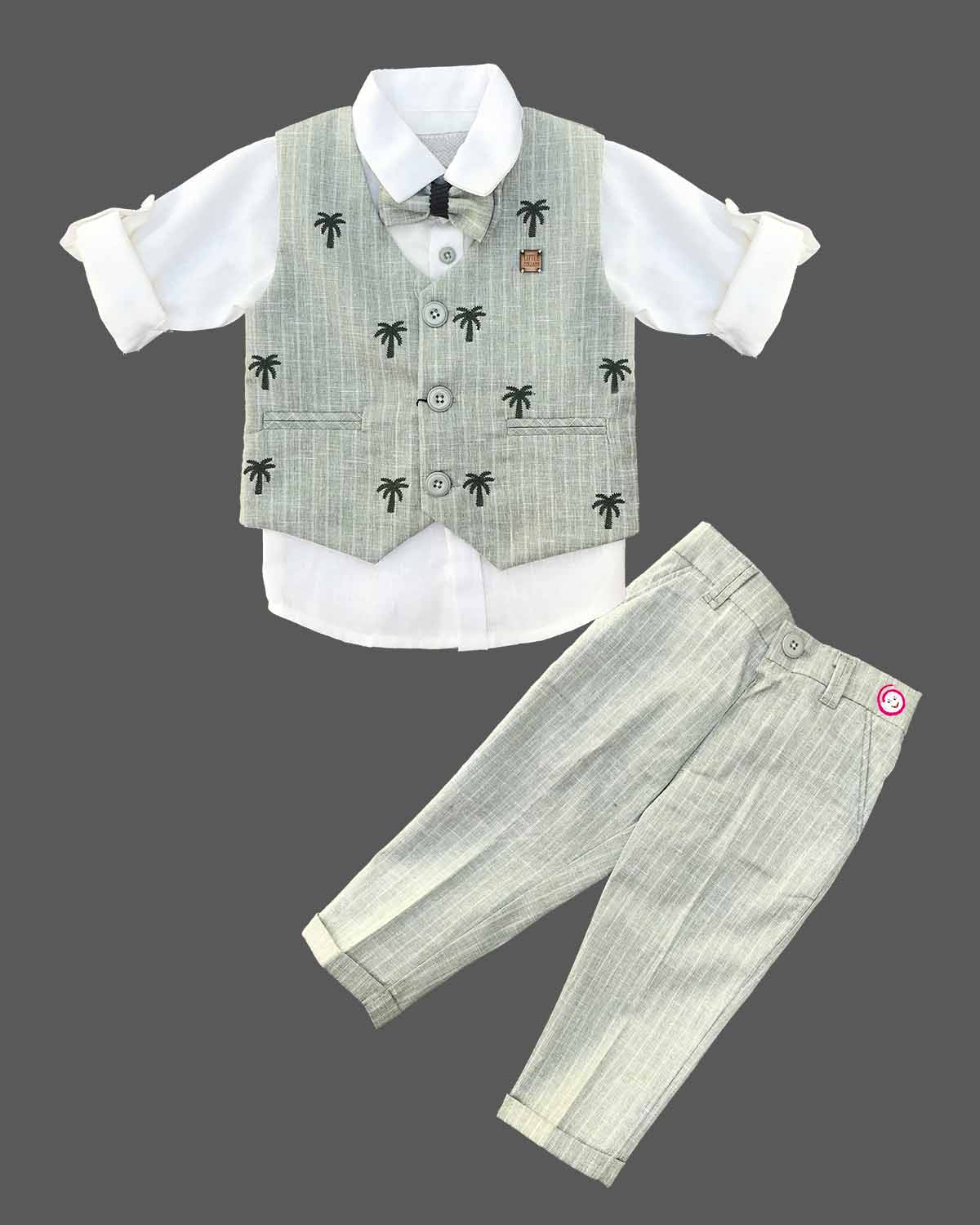 Boys full sleeve with waist coat set - Pastel Grey