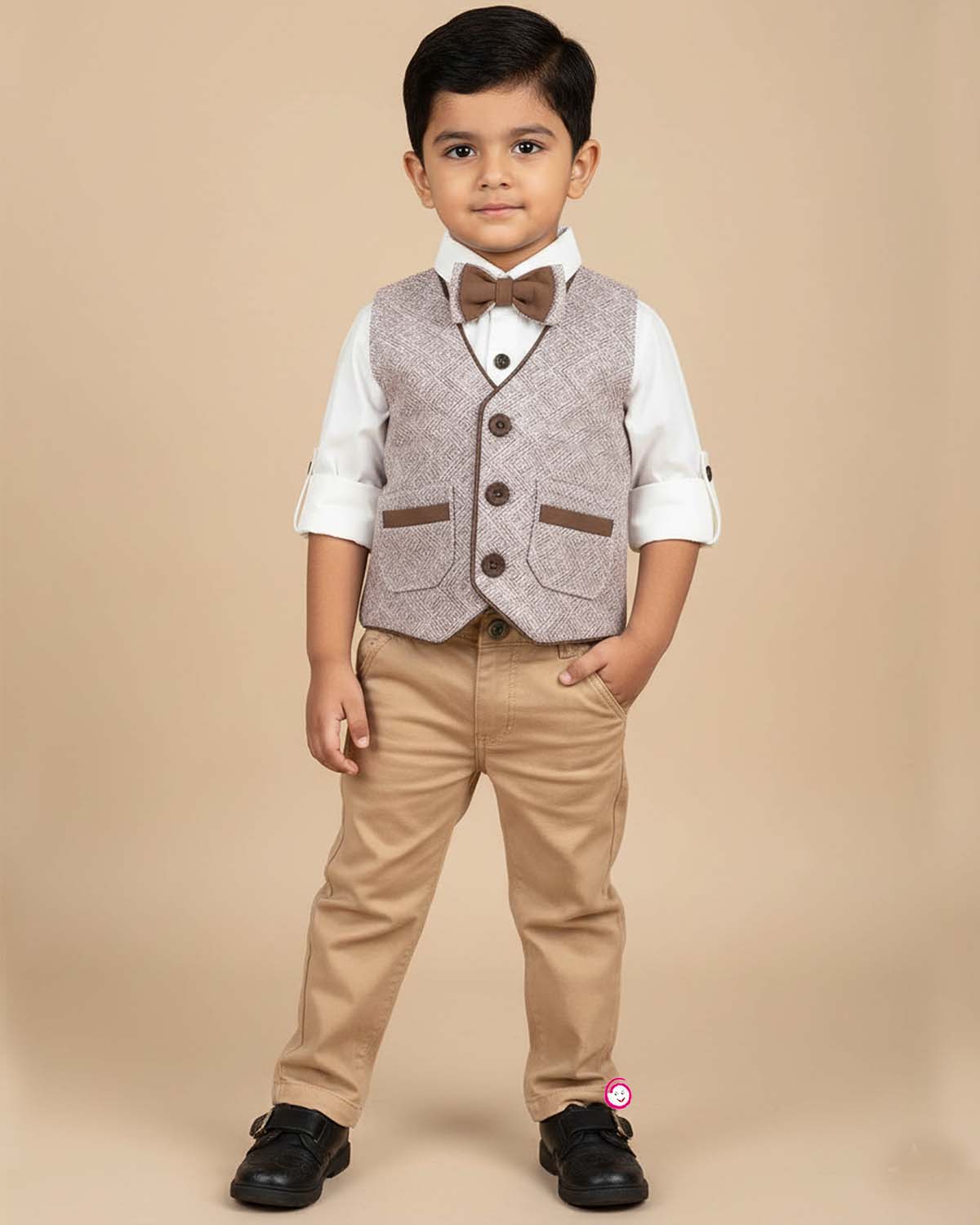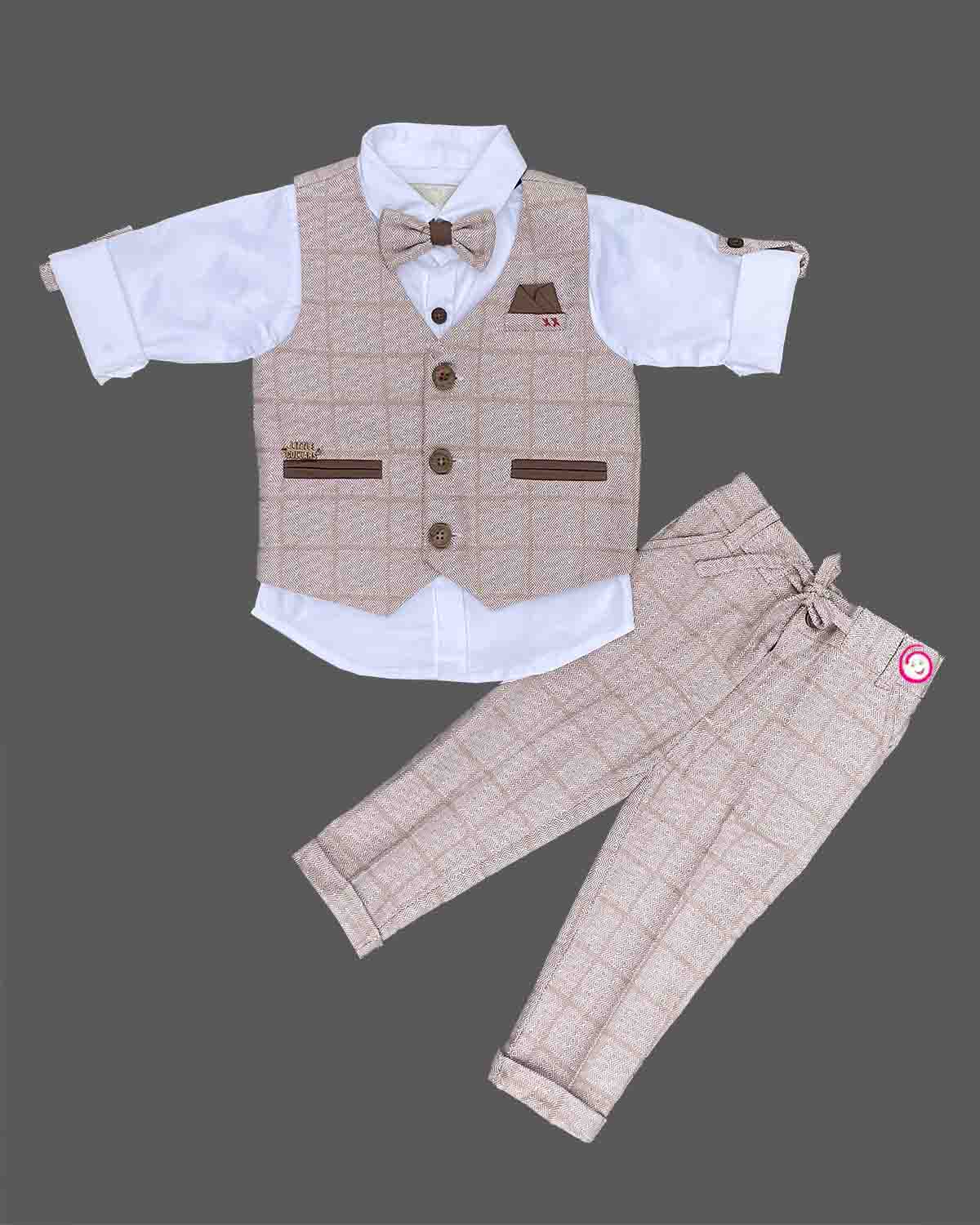 Item included in this package 1 Pant, 1 Shirt, 1 Waistcoat, 1 Bow