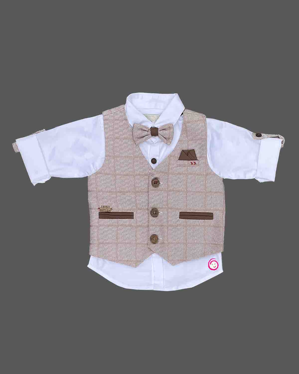 Boy full sleeve with waistcoat set - Beige