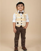 Boys elegant design with hooded neck waistcoat set - Yellow