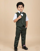 Boys full sleeve stripe print waistcoat set - Dark Green