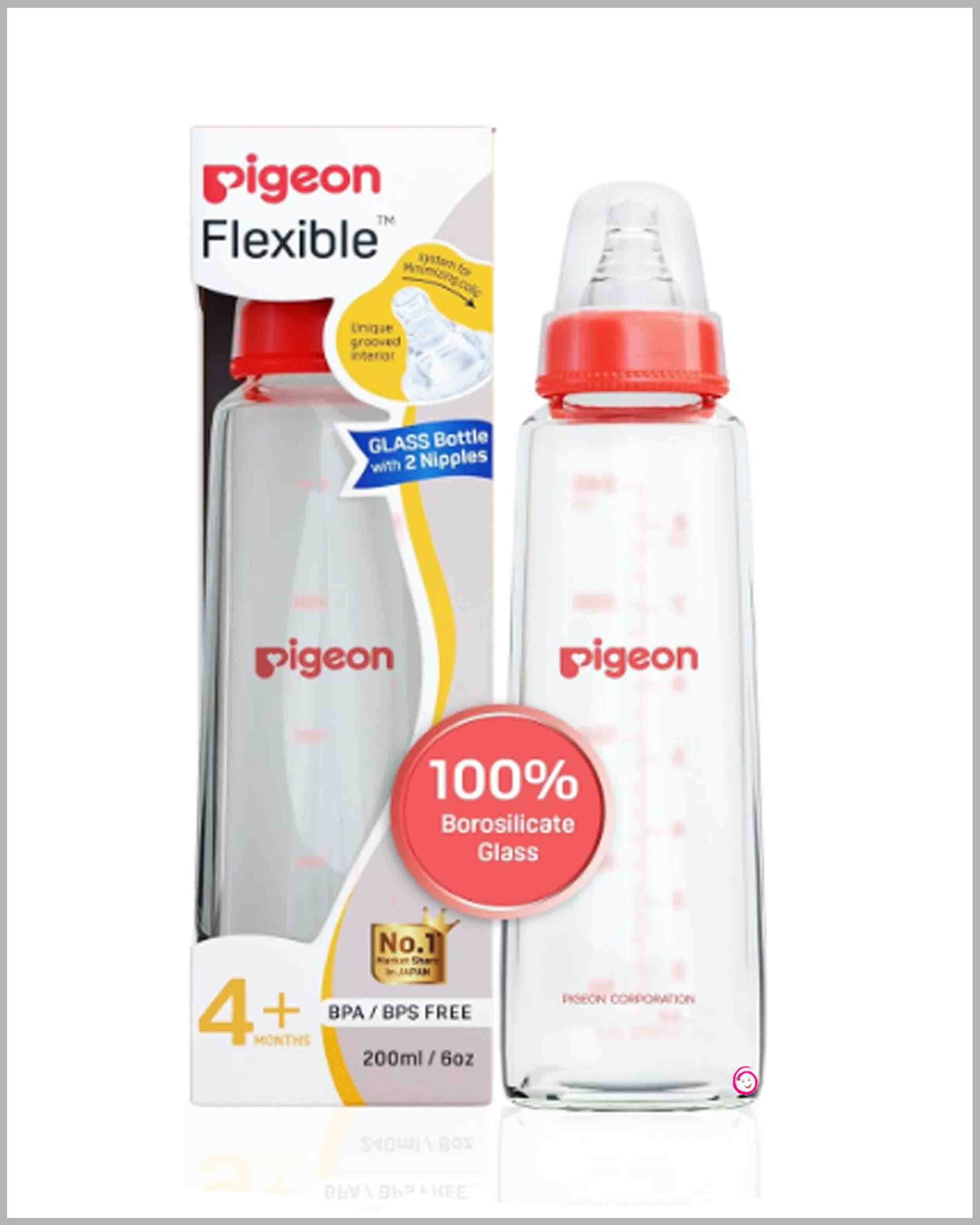 Pigeon flexible 4+ glass feeding bottle - Red(200ml)