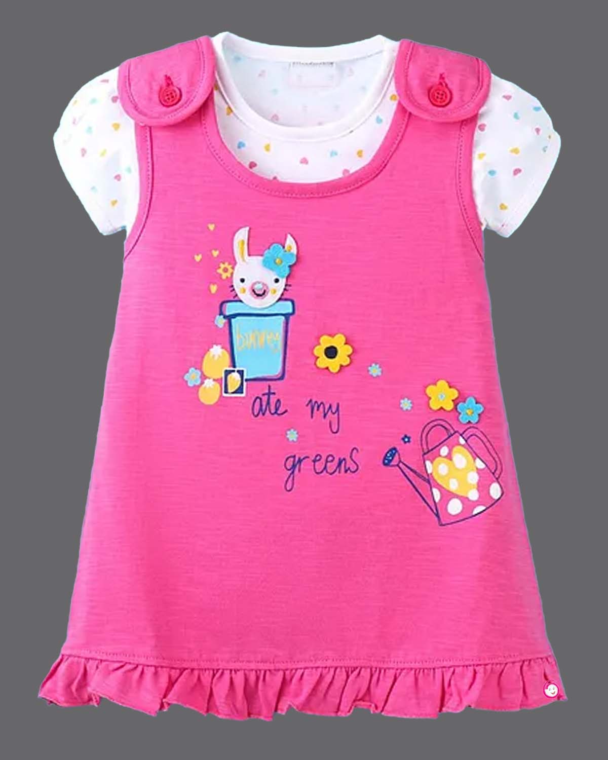 Girls beautiful design printed pinafore - Pink