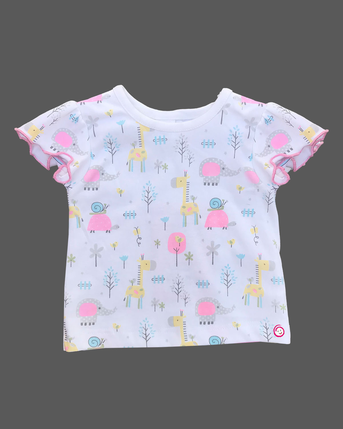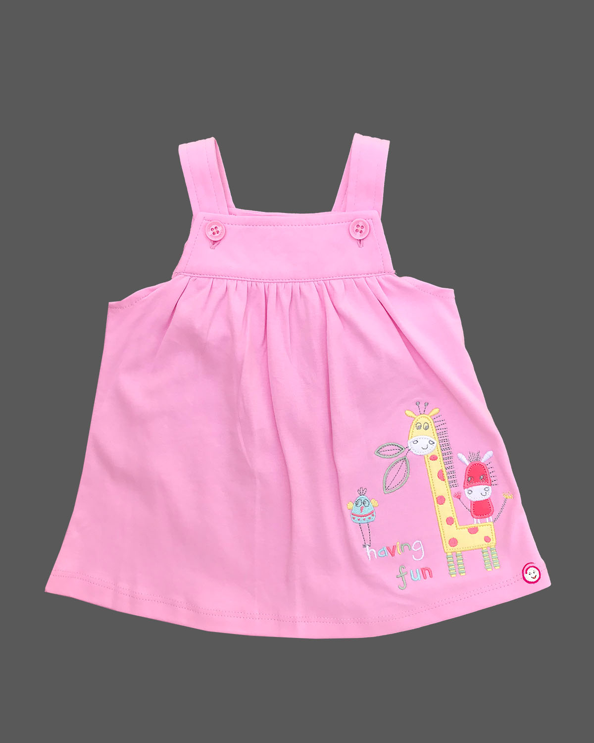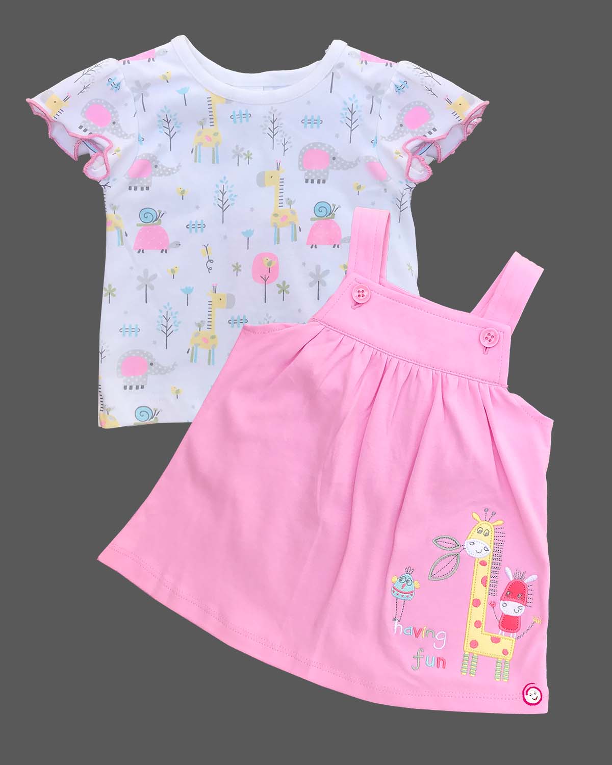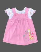Girls puff sleeve giraffe printed t shirt with pinafore - Pink