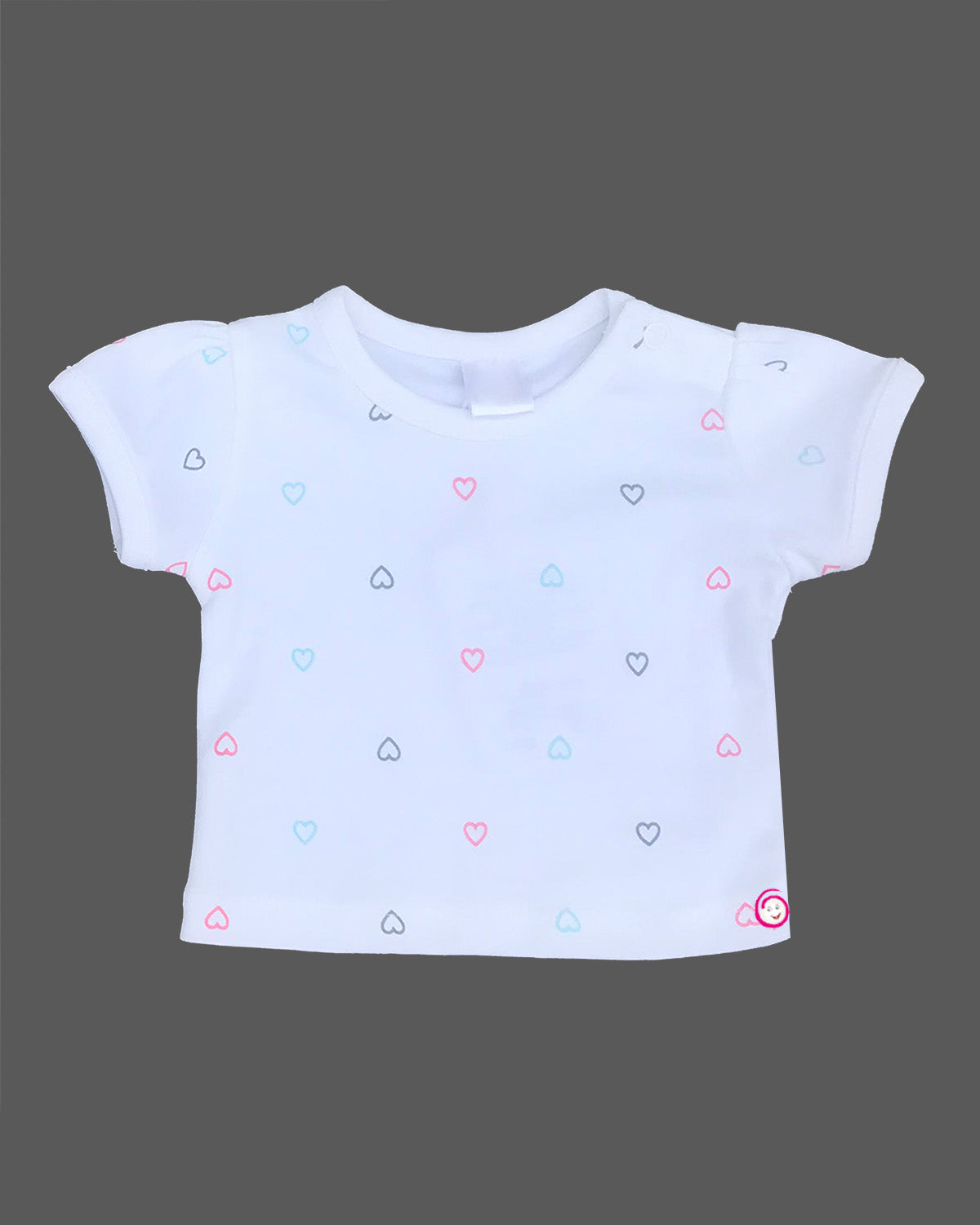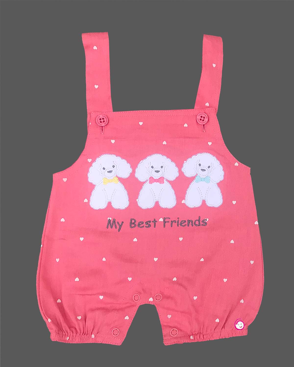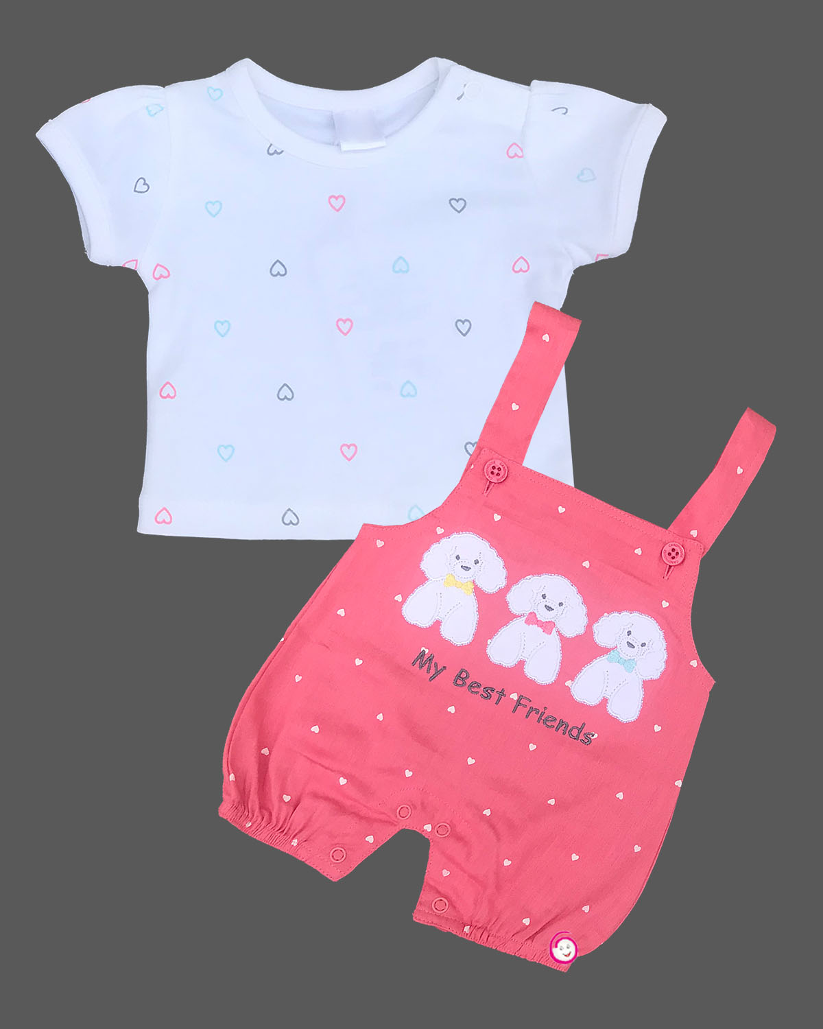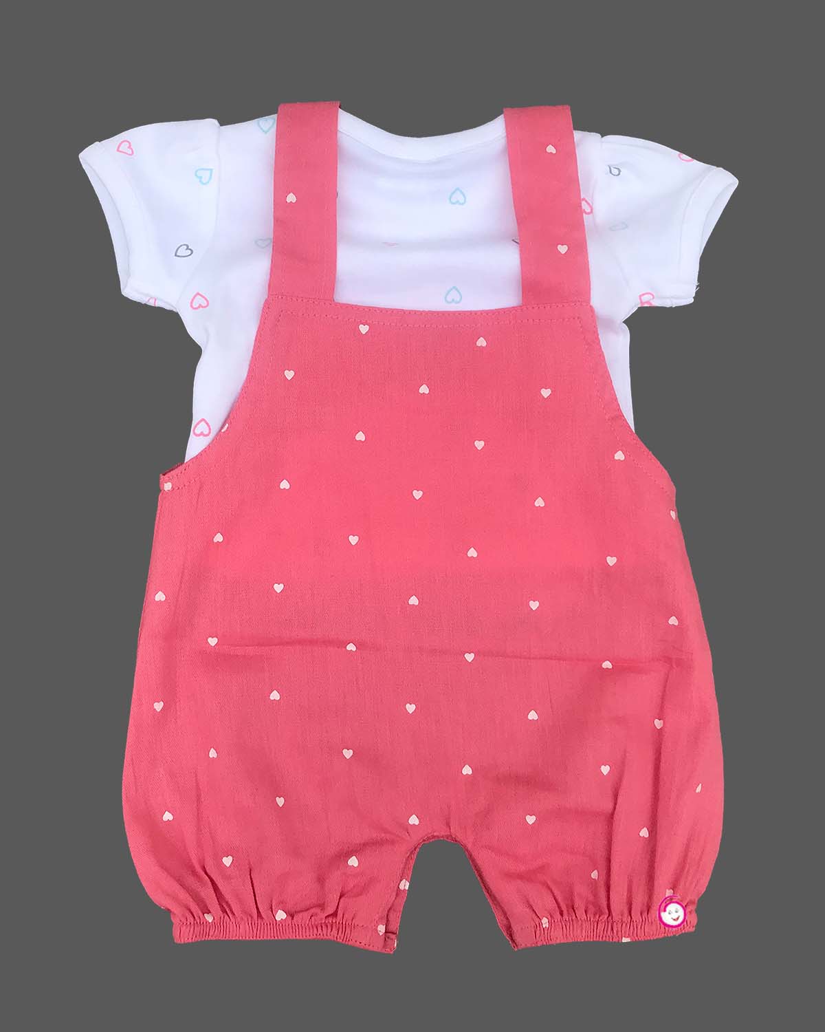 Girls puff sleeve heart printed dungaree set - Rose Pink