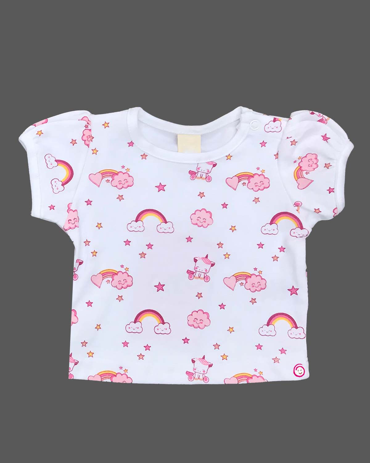Girls puff sleeve rainbow printed t shirt with pinafore - Green
