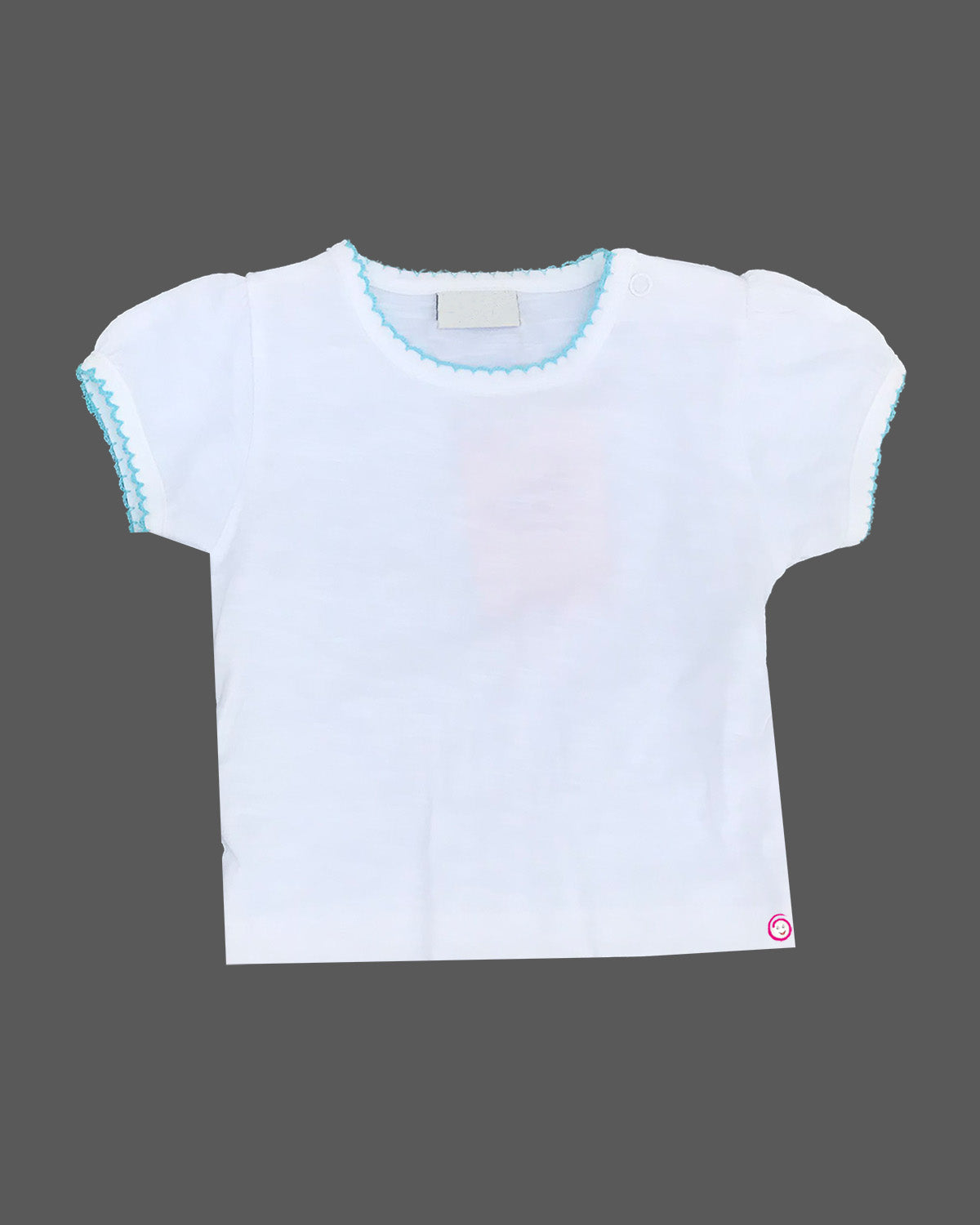 Girls puff sleeve t shirt with printed dungaree set - Sky Blue