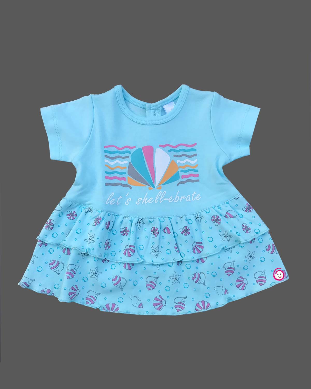 Girls sinker half sleeve shell printed frock - Blue