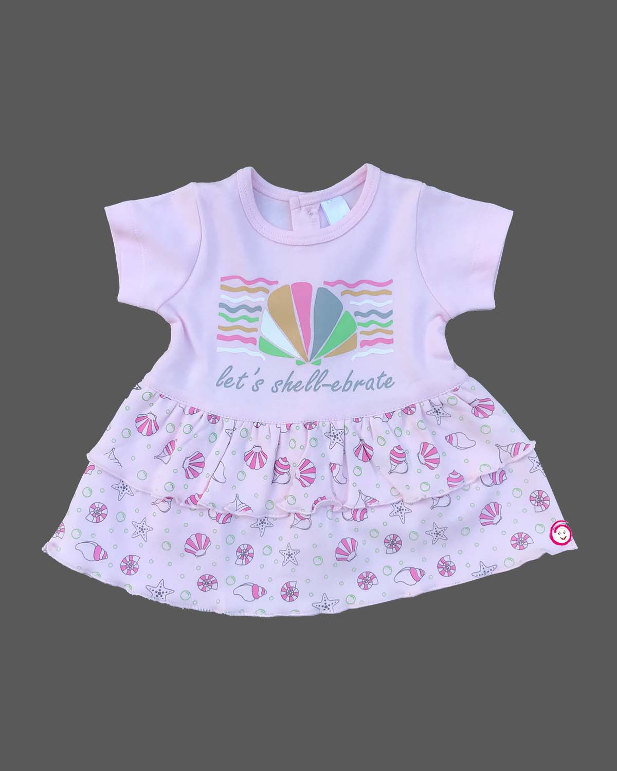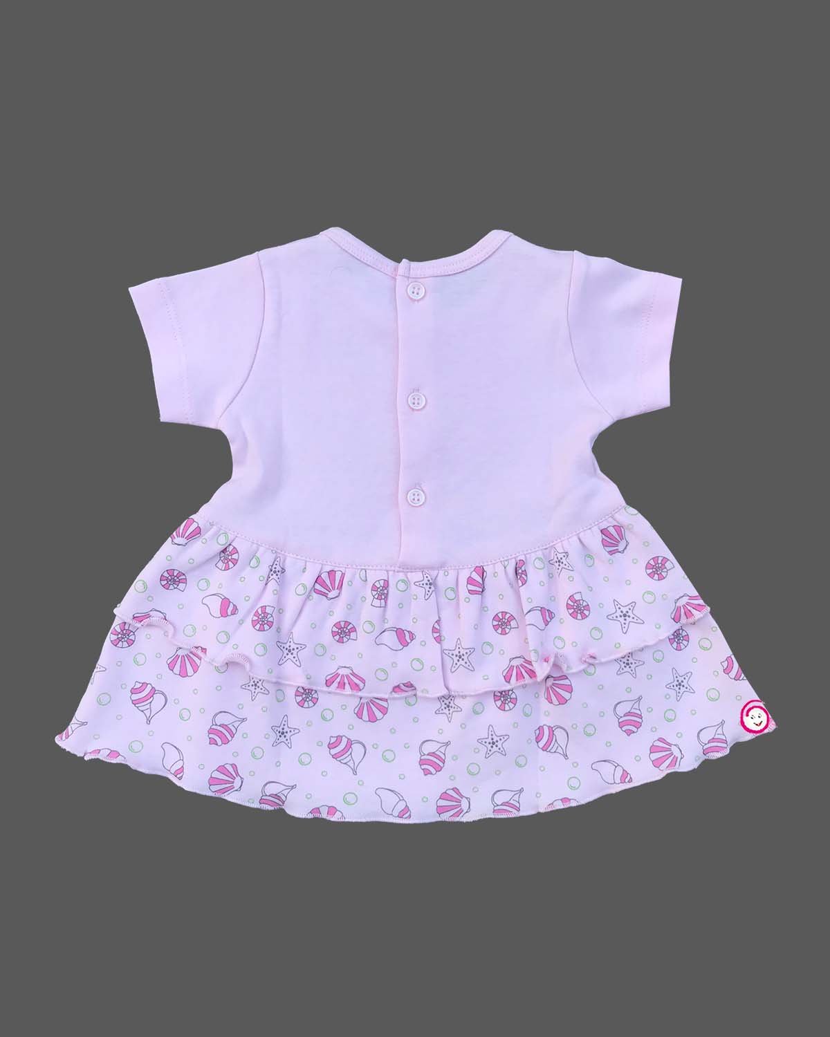 Girls sinker half sleeve shell printed frock - Pink