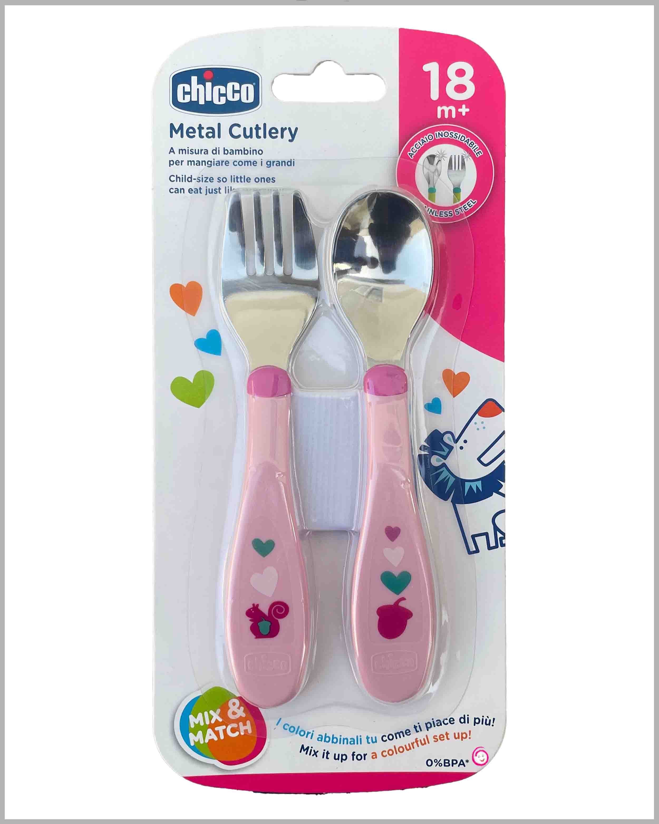 Chicco Mix & Match Metal Cutlery (18m+) - Pink