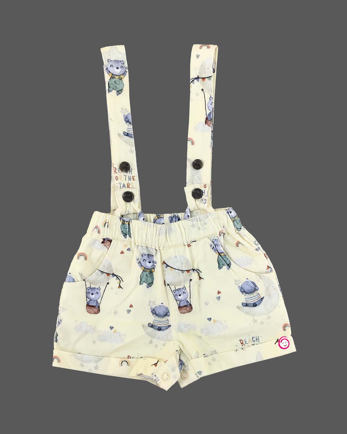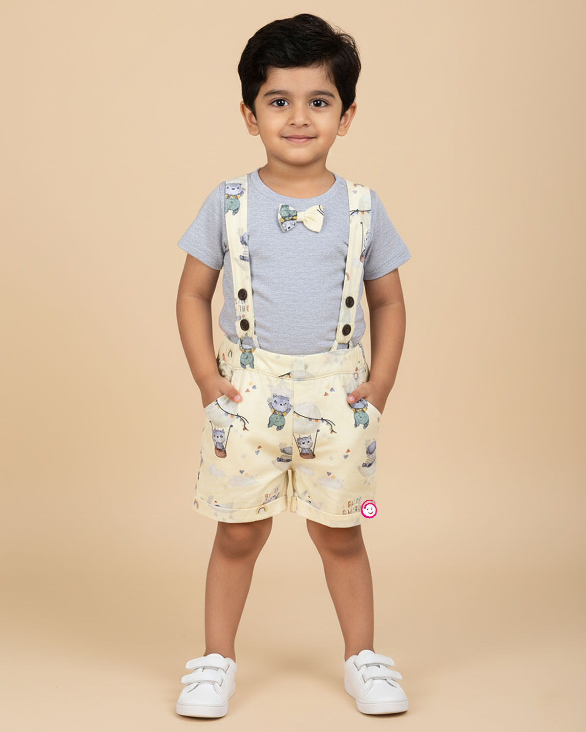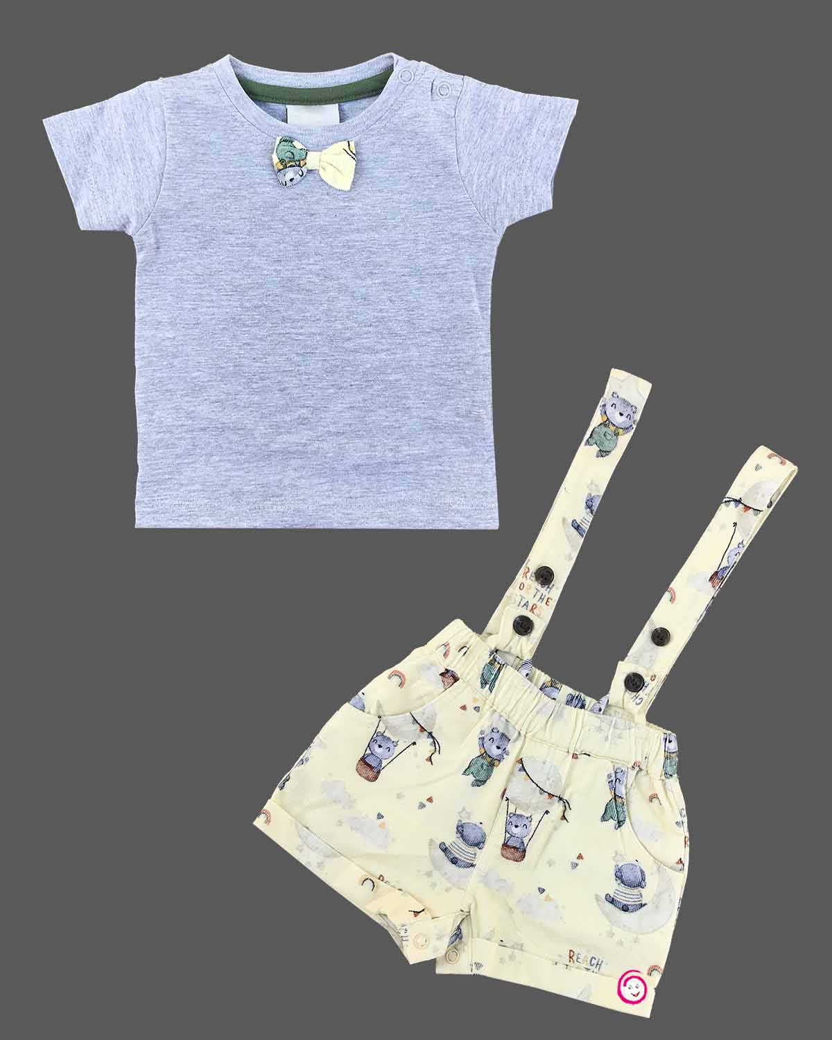 Boys bear print with bow tie & suspender set - Light Yellow