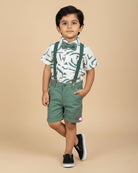 Boys elegant party wear suspender set - Mehandi Green