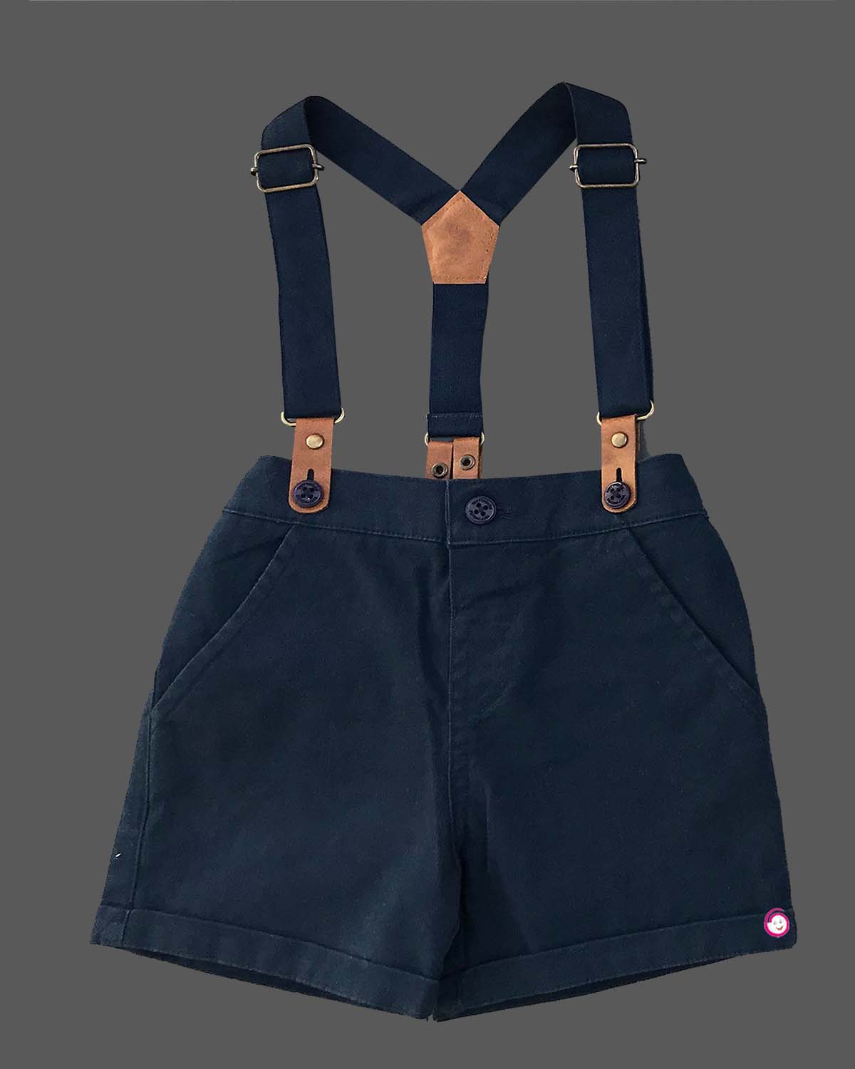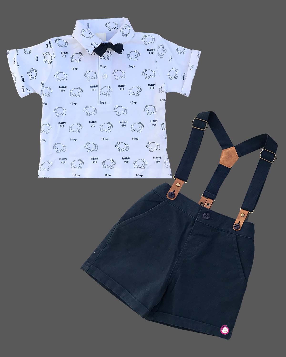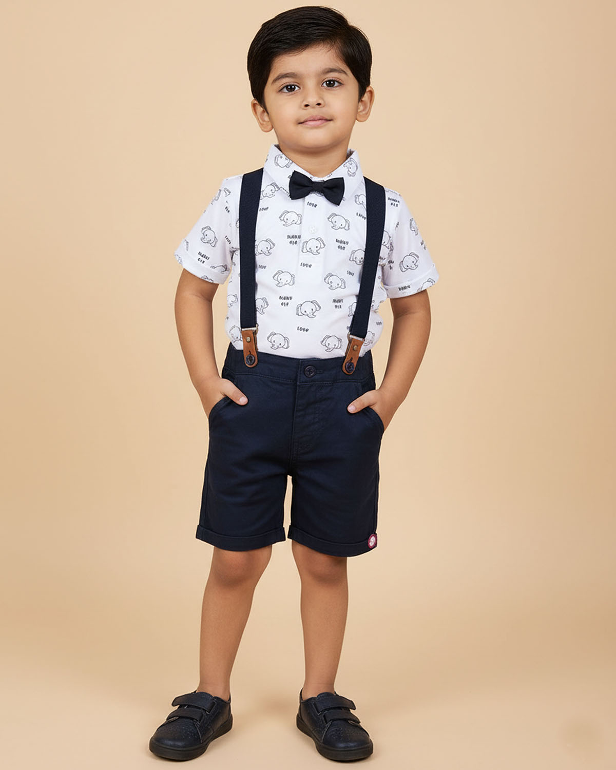 Boys elephant printed t-shirt with suspender set - Navy Blue