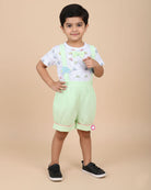 Boys half sleeve car printed t-shirt with suspender set - Pista Green