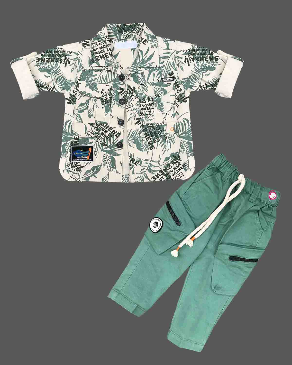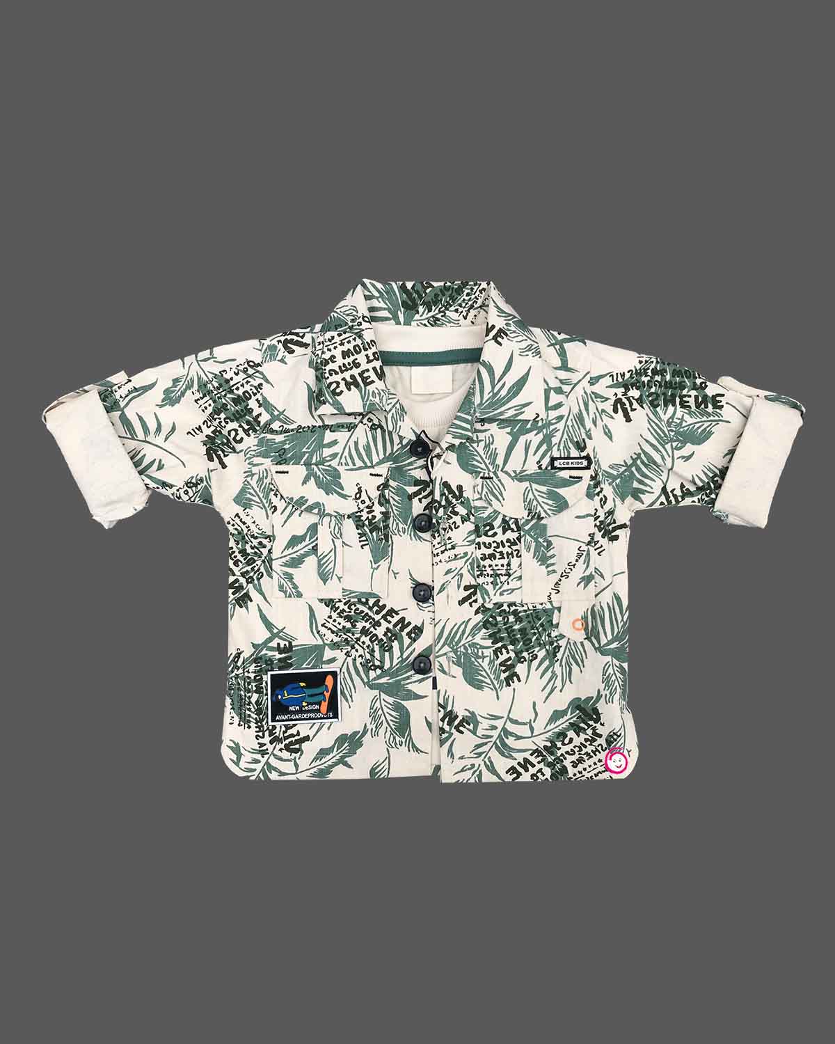 Boys tree printed shirt with t shirt - Mehandi Green