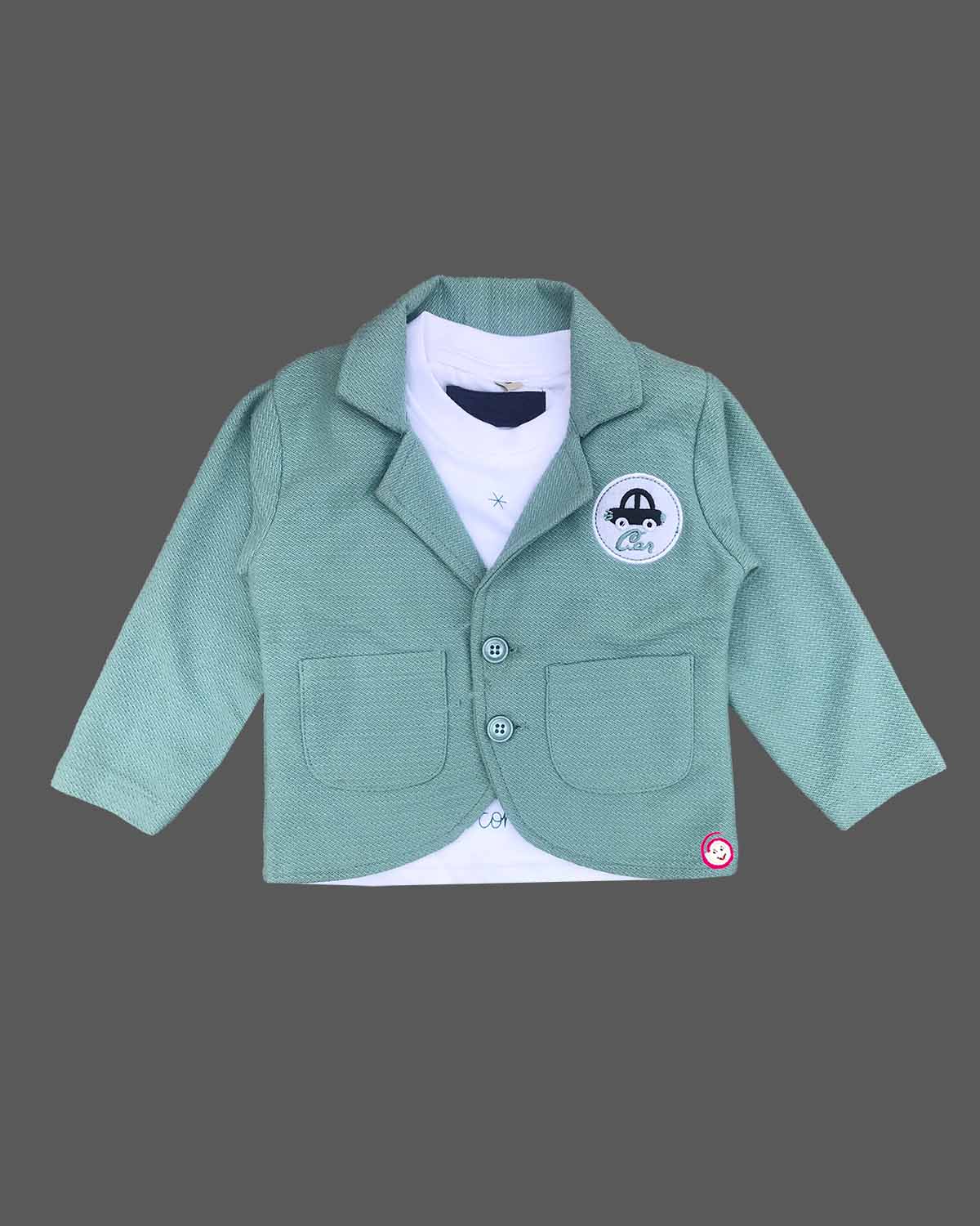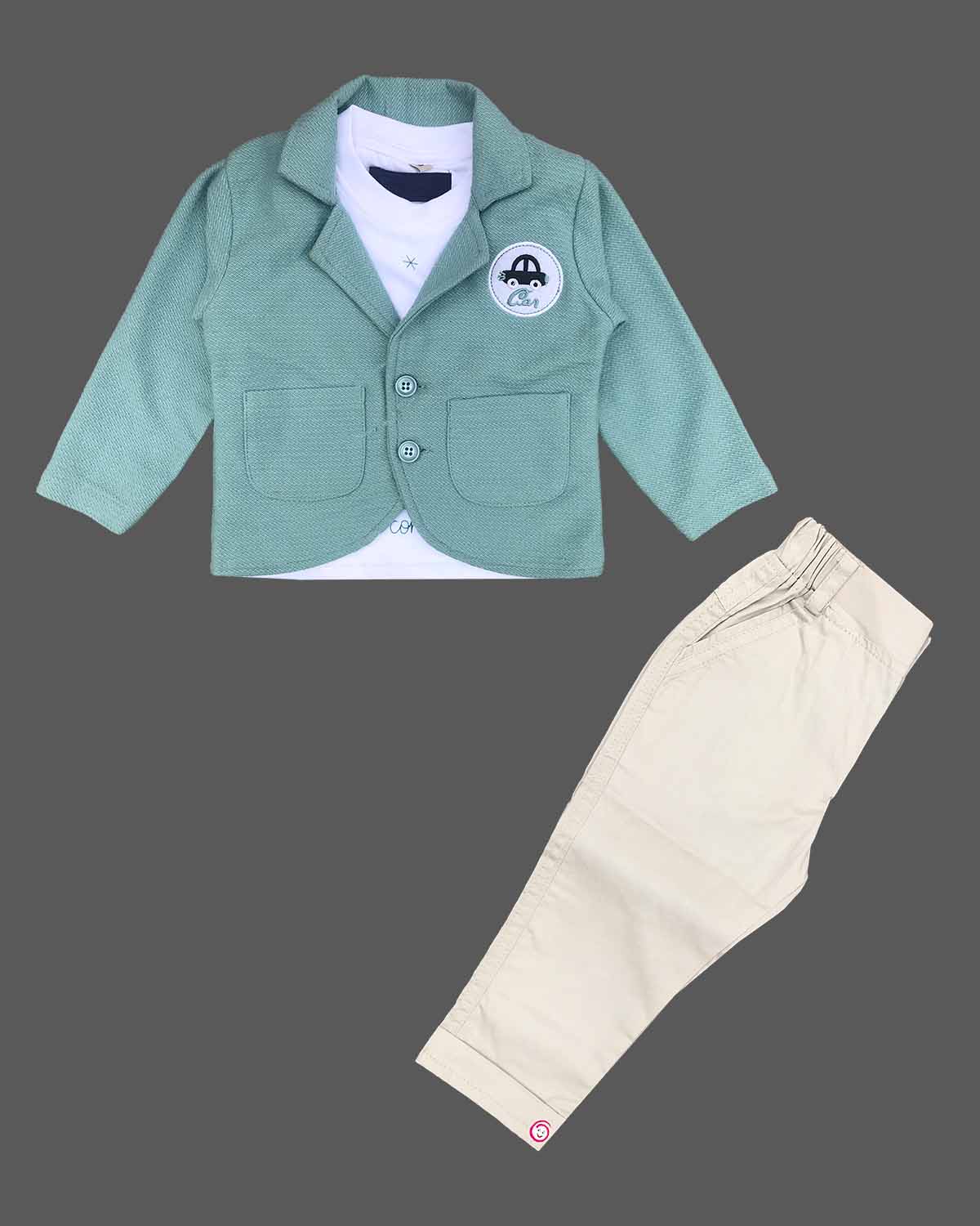 Boys blazer attached t-shirt with pant set - Green