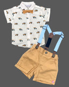 Boys jeep printed t shirt & bow tie with suspender set - Yellow
