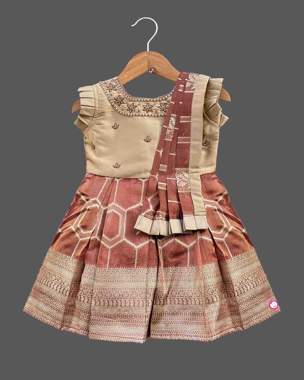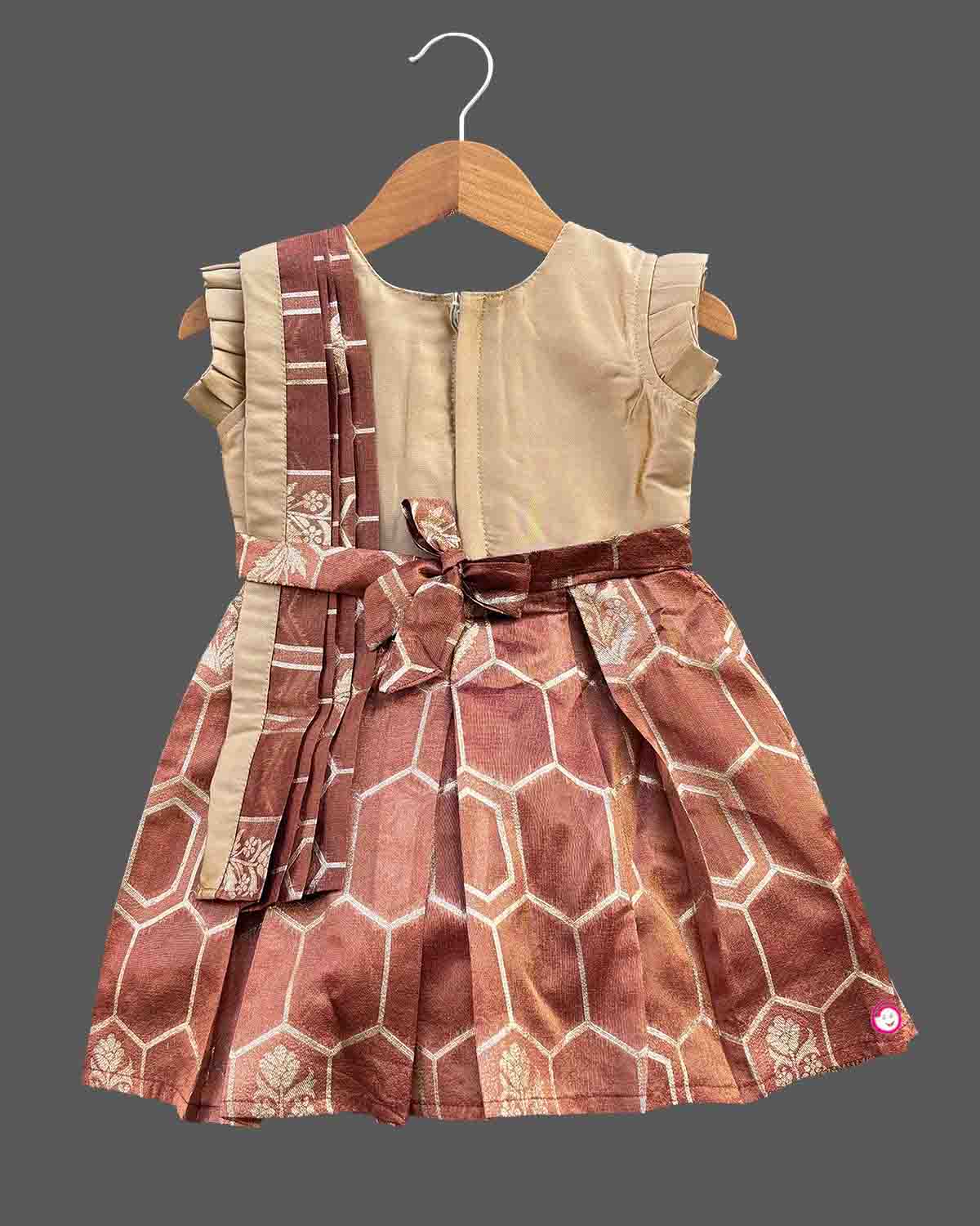 Girls traditional with frill sleeve frock - Beige